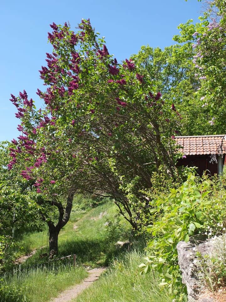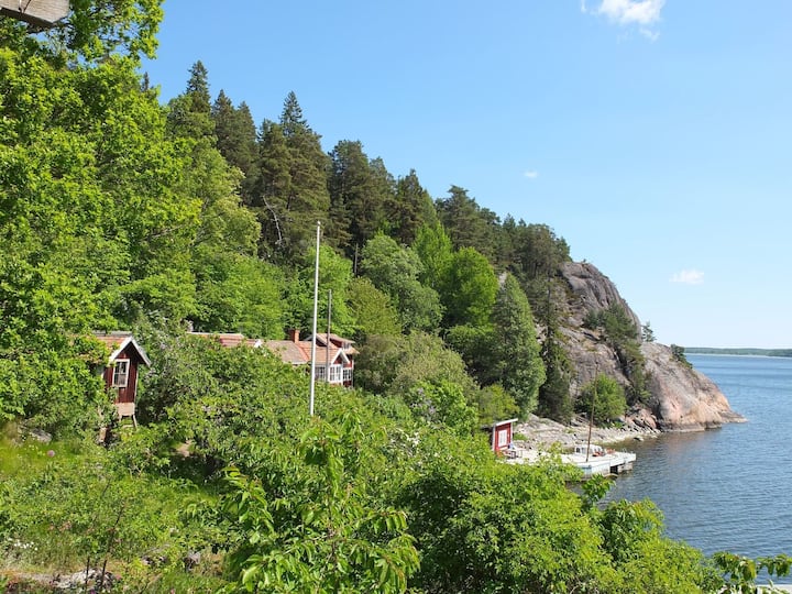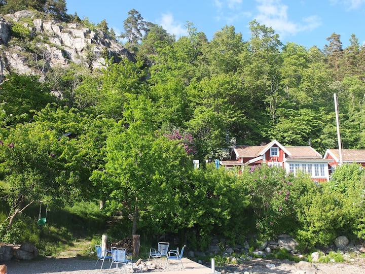 Di sini anda boleh menginap di rumah musim panas kayu Sweden klasik seluas 80 meter persegi, yang sebahagiannya diubahsuai pada tahun 2013 agak unik. Rumah ini kini menampilkan - antara lain - ruang tamu dua tingkat, loteng kayu, ruang makan baru tambahan kepada rumah musim panas asal dengan pemandangan laut panorama dan bekas loteng simpanan bertukar menjadi bilik kanak-kanak kecil. Selain daripada rumah utama, terdapat tiga rumah tetamu kecil. Salah satunya dinamakan "rumah pelabuhan" kerana lokasinya di dermaga (jadi anda benar-benar tidur dengan bunyi ombak). Yang kedua dinamakan "pondok pencinta" dan terletak di atas tanah berbukit, yang memberikan pemandangan laut yang menakjubkan dan gambaran keseluruhan kawasan itu sendiri. Rumah tetamu ketiga juga mempunyai pemandangan pokok dan laut yang menakjubkan, dan suasana yang sangat damai. Kedua-dua rumah ini baru diubahsuai, jadi bahagian dalamnya sangat mudah, kerana kami belum berpeluang untuk menghias banyak.