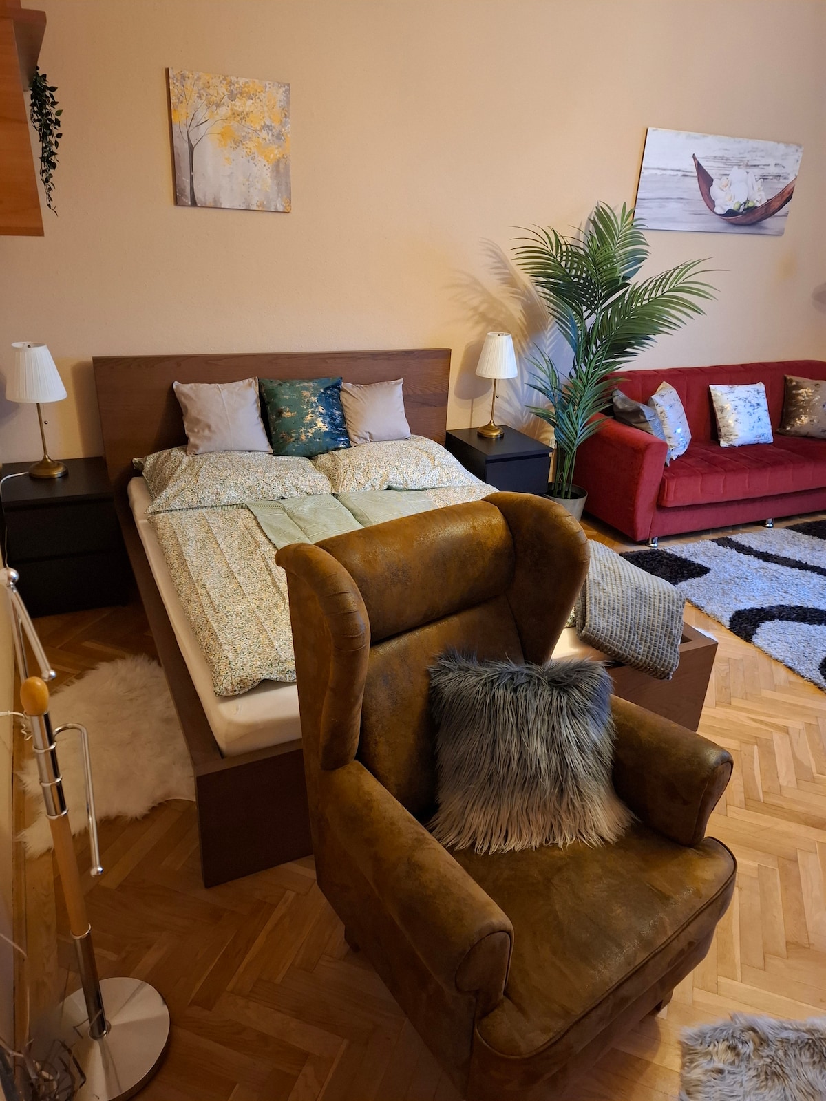 Selamat datang ke apartmen saya di daerah ke-13. Apartmen ini baru diubahsuai dan direka. Flat ini adalah apartmen yang luas dan dapur yang lengkap. Apartmen ini berperabot lengkap. Anda boleh menemui semua yang anda perlukan (A/C, tv, wifi, mesin basuh, mesin kopi, pengering rambut, seterika, tuala dll.) Hanya 3 hentian metro dari pusat bandar. Ia berjarak 10-12 minit dari pusat bandar. Pengangkutan awam (kereta api bawah tanah, trem, bas) ke pusat bandar, pasar, taman permainan, farmasi, restoran, kafe, kedai roti semuanya berdekatan.