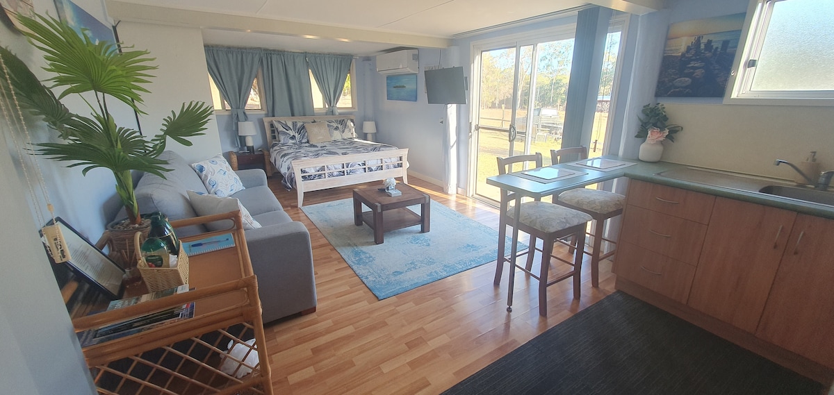 Bertenang di percutian yang unik dan tenang ini. Unit 1 bilik tidur terletak di tingkat bawah rumah ladang kami dan mudah diakses dari jalan utama dengan tempat letak kereta yang menyamar. Terletak di penginapan luar bandar hanya 5-8 minit ke bandar-bandar pantai emu PARK dan pantai YEPPOON, unit serba lengkap ini selesa dan menarik. Duduk di kawasan luar yang tertutup dengan minuman, menghadap penginapan dan empangan, dan nikmati bunyi yang tenang di negara ini, matahari terbenam yang indah, haiwan ladang dan hidupan liar.