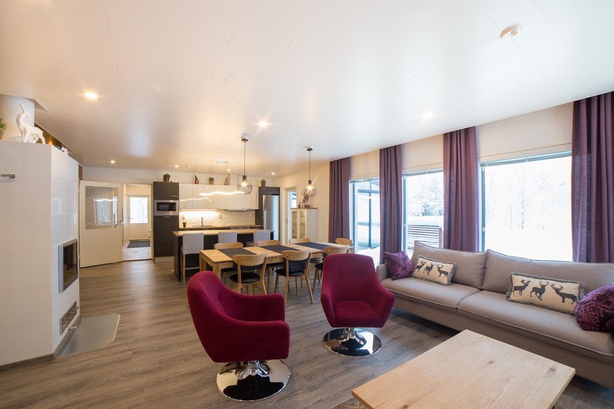 Bersantai di sauna peribadi anda di apartmen moden yang diubahsuai sepenuhnya ini di tengah-tengah. ★ "...bersih, moden dan dihiasi dengan cantik. Sangat disyorkan!" ☞ Sauna & tempat letak kereta percuma. ☞ Dapur lengkap + lengkap ☞ 65” Smart-TV & wifi 500 MB. Diubahsuai ☞ sepenuhnya. 》2 minit berjalan kaki ke pusat membeli-belah, restoran dan lawatan artik. 》3 minit berjalan kaki ke lapangan terbang/bas ulang-alik Santa Claus. 》11 minit memandu ke Santa Claus Village dan ke ✈ lapangan terbang Rumah bergaya 55m2 di tingkat 1 –> tiada lif. Tempah sekarang sebelum ia hilang!