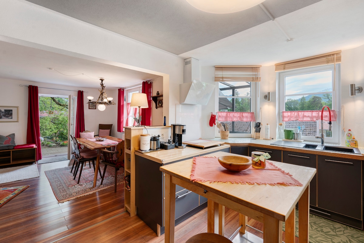 Selamat datang ke Ruhpolding! Kami gembira untuk mengalu-alukan anda ke apartmen kami yang diubahsuai dengan penuh kasih sayang. Terletak di tingkat bawah, penginapan ini menawarkan anda akses sendiri serta teres yang sebahagiannya tertutup dengan tempat duduk luar. Taman ini menjemput anda untuk berlama-lama dengan tempat tidur dan barbeku, dan ruang letak kereta anda terletak betul-betul di hadapan apartmen. Bilik simpanan untuk basikal dan peralatan sukan musim sejuk juga disediakan. Keluarga Bachl