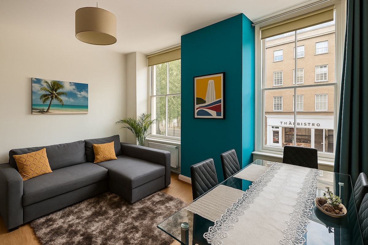 - Daftar masuk sendiri 24/7 melalui pengambilan kedai tempatan keynest - Rutin pembersihan profesional - Jalur lebar gentian berkelajuan tinggi - Pemanas berpusat - Tingkat 4 (dengan lif) - Kawasan senyap - Lokasi utama - 1 katil raja (150cm x 200cm), 1 katil sofa double (135cm x 190cm) Apartmen yang indah di tengah-tengah London, hanya sepelemparan batu dari Oxford Street, stesen tiub Tottenham Court Road, dan Covent Garden. Sila ambil perhatian bahawa dilarang merokok dibenarkan di penginapan ini.