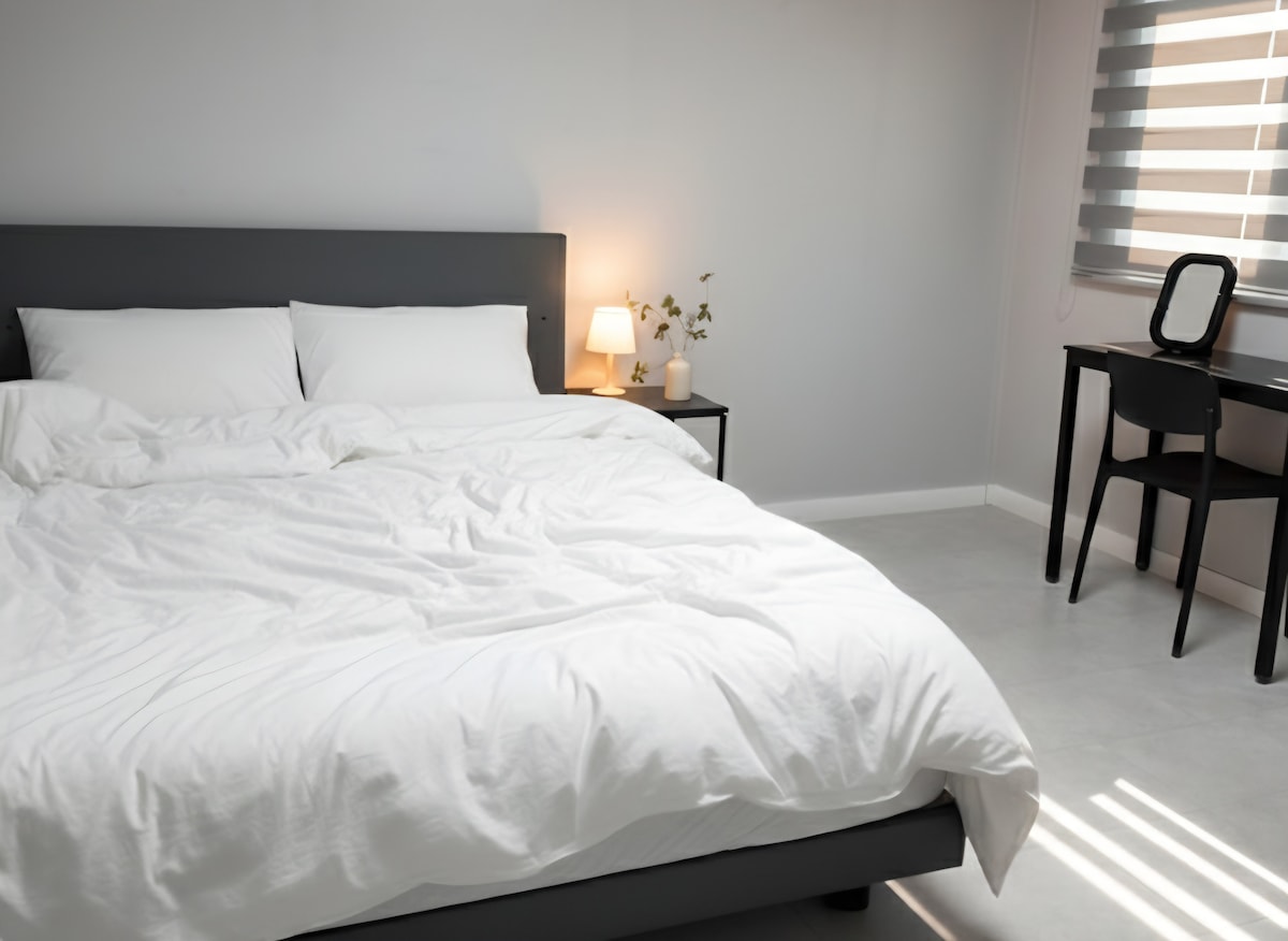 Hue Stay mempunyai ruang yang luas 35 pyeong dengan putih & kayu, dalaman yang berkualiti tinggi, dan kemas. Kelengkapan tempat tidur dan pencahayaan gaya hotel memberikan keselesaan dan keselesaan. Ia adalah ruang dalaman 35-pyeong yang luas di mana anda boleh berehat. ※ Phil Dog ※ Ia berada di tingkat 4 dan tiada lif. Apabila membuat tempahan, buat tempahan dengan jumlah tetamu tanpa mengira bayi Sila (2 orang dewasa, 2 bayi = > 4 tetamu) Kami akan menyediakannya mengikut bilangan orang yang anda tempah. Tempahan untuk 2 orang - Penggunaan bilik tetamu 2 (1 katil queen). Tempahan untuk 3 orang - Penggunaan bilik tetamu 1 (1 katil queen, 1 katil super single).