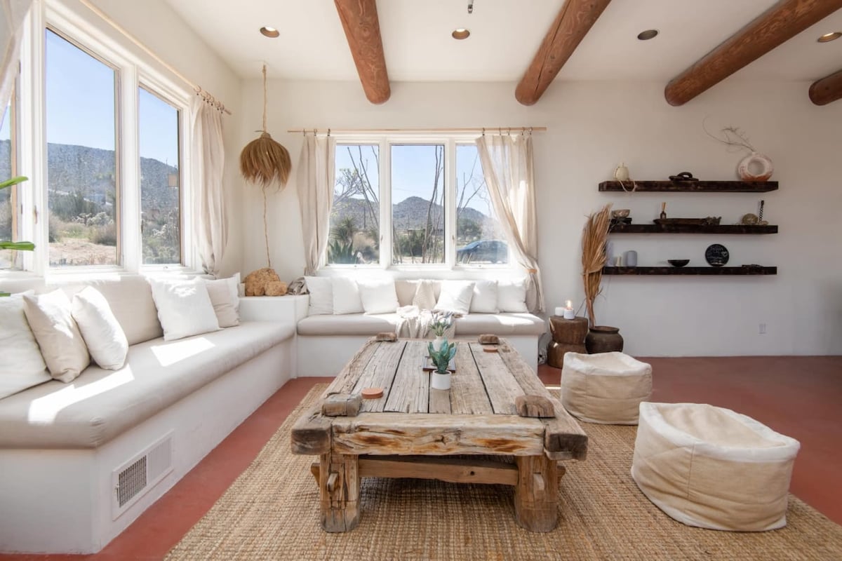 Datang berehat di 2 bilik tidur yang cerah dan berinspirasikan boho ini, 1 bilik mandi dengan pengecas Kenderaan Elektrik percuma, kolam terjun koboi (dibuka bermusim), dan halaman belakang persendirian yang terletak kurang daripada 5 minit dari Taman Negara Joshua Tree. Sama ada anda suka mendaki, mendaki, atau hanya ingin berehat, Casa Blanca menawarkan kepada tetamu pengalaman unik kesunyian yang tenang dalam jarak berjalan kaki dari bandar Joshua Tree.