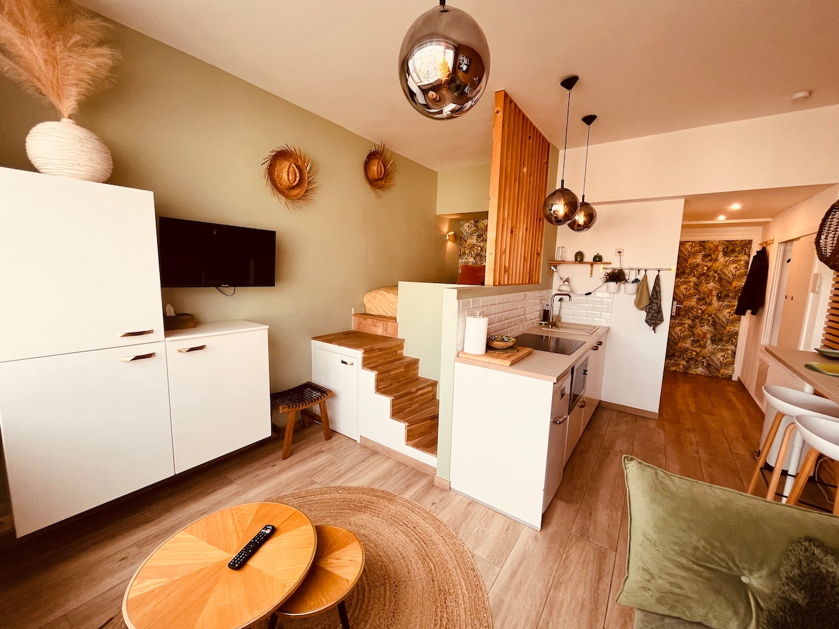 Apartmen 25m2 yang hebat di tingkat 1 (tiada lif) ini terdiri daripada: → Katil kelamin yang selesa (140x200) → Dapur yang serba lengkap dengan ketuhar gelombang mikro, airfryer, pembakar roti, mesin kopi, cerek, dll... → Ruang tamu dengan sofa dan meja makan → TV 4K → Wifi pantas dan selamat → Bilik mandi dengan semua yang anda perlukan → Cadar → Cadar mandi →> pembersihan profesional termasuk dalam harga! Rumah yang dihias dengan teliti ini mempunyai semua yang anda perlukan untuk penginapan yang selesa.