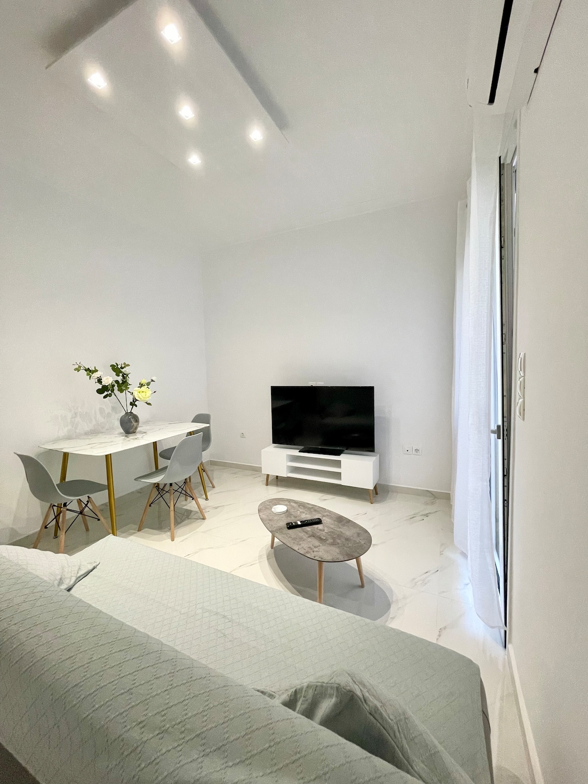 Studio Cerah dan Santai, di tingkat 6, diubahsuai sepenuhnya pada tahun 2022 dengan kawasan teres persendirian yang besar, di kawasan yang selamat dan indah, 5 minit dari Nea Smyrni Square dengan berjalan kaki. Di sana anda boleh menemui banyak kedai kopi, bar, restoran dan suvlaki. Terdapat trem (Megalou Alexandrou) dan stesen bas (di Syggrou) kira-kira 5 minit berjalan kaki yang boleh membawa anda ke pantai atau pusat Athens (sekitar 15 minit). Anda juga boleh melawat ladang rukun Nea Smyrni, kurang daripada 10 minit berjalan kaki.