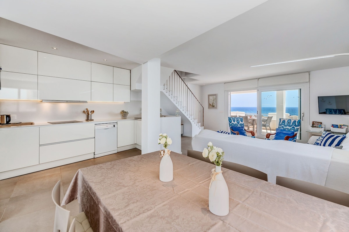 Rumah berkembar tepi laut dengan pemandangan menakjubkan. Tingkat utama menampilkan ruang tamu-makan yang luas dengan dapur pelan terbuka dan dua teres, sesuai untuk sarapan dan makan sambil menghadap Laut Mediterranean. Di tingkat atas, terdapat 3 bilik tidur: dua bilik dengan katil single dan satu bilik dengan katil double dan tingkap besar. Ia mempunyai 3 bilik mandi lengkap dan ruang atas bumbung dengan kerusi berjemur. Hanya beberapa meter dari pantai dan marina. Boleh memuatkan sehingga 6 tetamu, sesuai untuk keluarga, dengan Wi-Fi dan mesin basuh. Sangat cerah!!