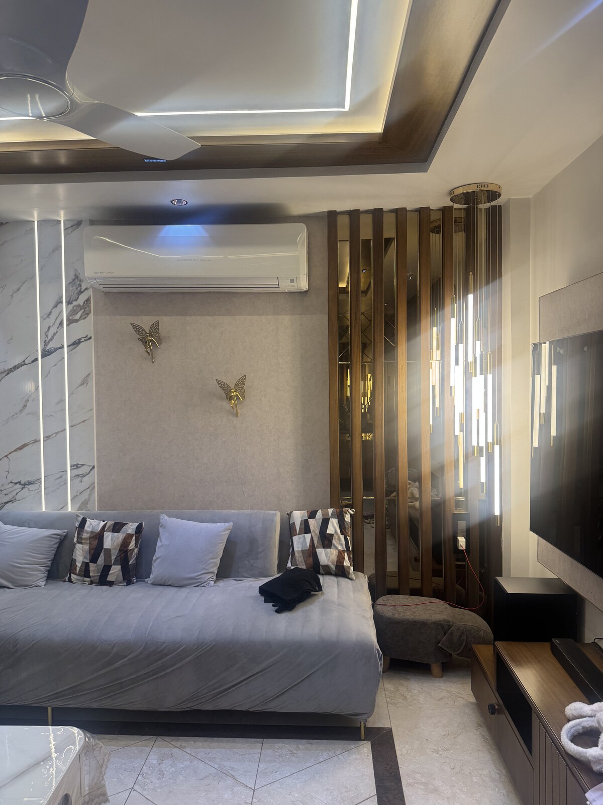 • Luxurious 2 BHK apartment in a peaceful yet central location • Located in the heart of the city with easy access to attractions, restaurants, and shopping • Beautifully designed interiors with a warm and stylish vibe • Ideal for families, couples, and business travelers • Two clean, modern bathrooms • Fully equipped kitchen with fridge, gas stove, and basic cooking amenities • Comfortable, modern space that truly feels like home