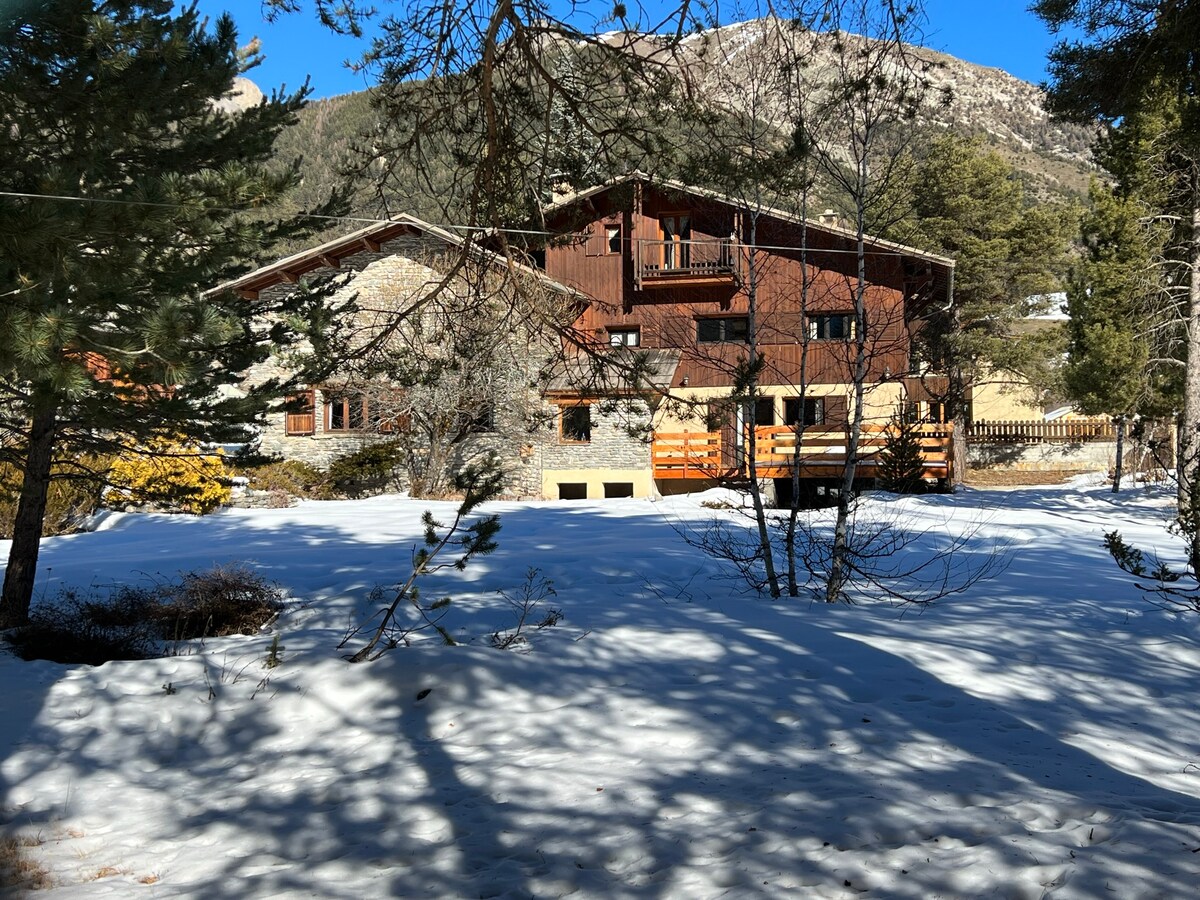 Kotej kami yang luar biasa, hangat dan tenang boleh menampung 10 orang dengan selesa, sesuai untuk penginapan bersama keluarga atau rakan. Di ketinggian Briançon, ia menawarkan pemandangan gunung yang menakjubkan dengan tingkap kaca besar dan teres panorama. 5 minit dengan kereta dari kereta kabel Prorel yang akan membawa anda ke kawasan Serre-Chevalier yang luas, tetapi juga kedai, Cité Vauban sambil dikelilingi oleh alam semula jadi. Datang dan nikmatilah, salji telah tiba!