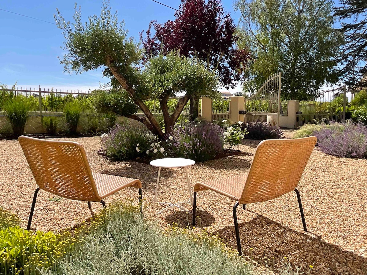 Rumah tetamu "Le figuier du close d 'Emilion" bersebelahan dengan rumah kami, yang telah diubahsuai sepenuhnya dan dilengkapi dengan perabot untuk menawarkan semua keselesaan moden. Mereka mempunyai dapur lengkap dan taman berkongsi dengan barbeku, plancha dan penggorengan. Pokok buah-buahan menawarkan tempat yang cerah atau teduh dan kami telah memasang katil berjemur untuk keselesaan anda. "Le closed 'Emilion" terletak 5 minit dari kampung Saint Emilion dan beberapa langkah dari Dordogne.