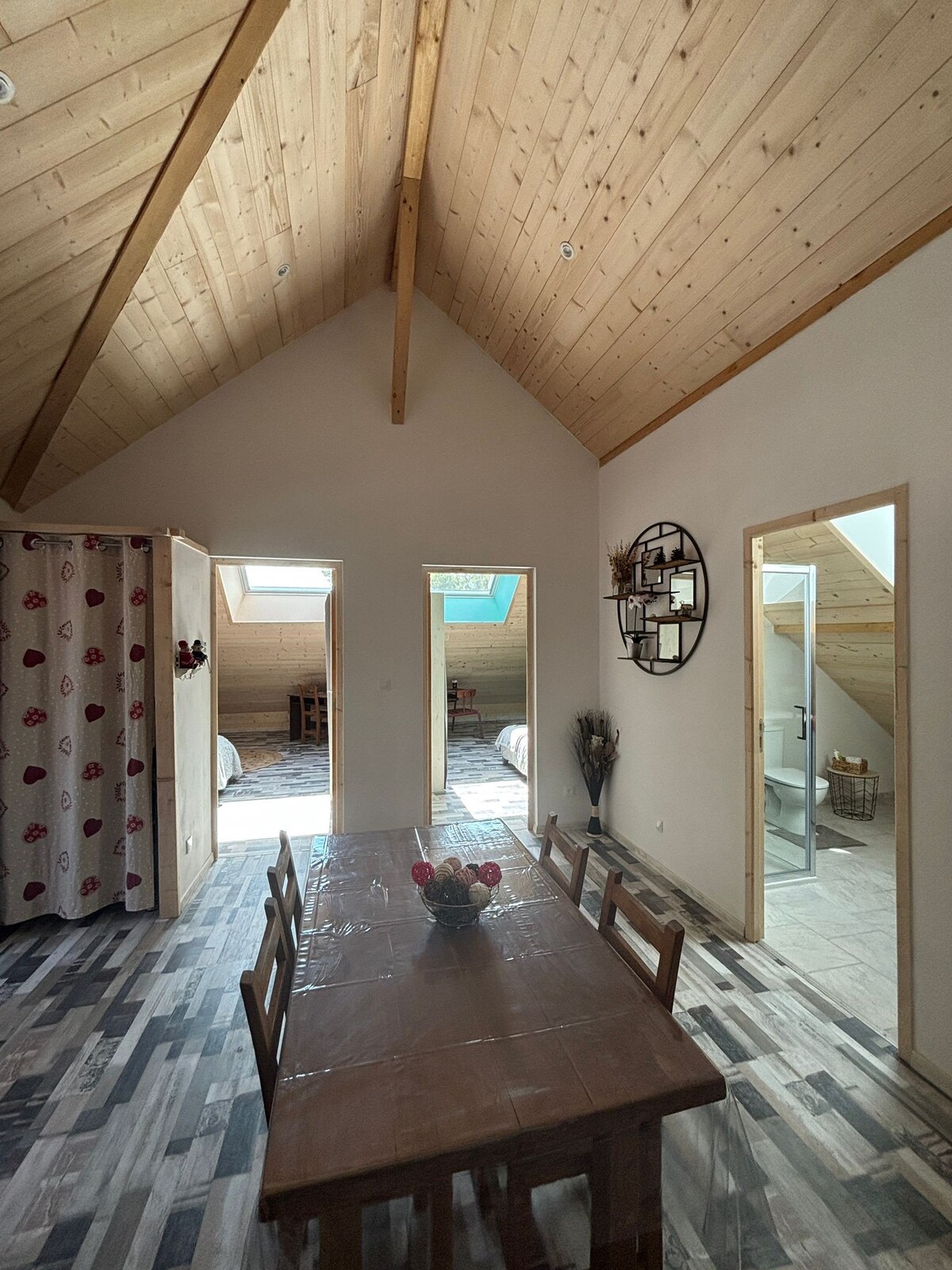 Apartmen yang diubahsuai sepenuhnya kira-kira 50 m2, gaya chalet, dengan kawasan halaman dan teres teduh yang besar. Anda akan mendapat pemandangan indah gunung-ganang di sekitarnya. Pendakian berlepas dan banyak aktiviti (basikal, akuatik) Penginapan anda juga boleh santai dan aman untuk keluarga atau dengan rakan-rakan. 5 minit dari kampung dan kedai-kedai , 15 minit dari Embrun, badan air dan Tasik Serre Poncon dan 30 minit dari resort ski ( Les Orres, Vars-Risoul dan Crevoux)