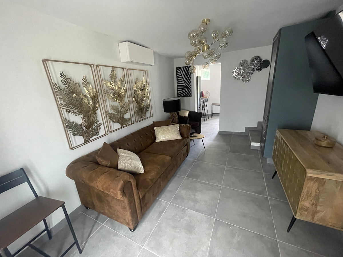"Sarang pencinta" adalah tempat yang ideal untuk pasangan yang mencari kelonggaran dan zenitud. Rumah seluas 70m2 yang diubahsuai sepenuhnya ini telah dilengkapi dan dihiasi dengan warna dan bahan semula jadi oleh hiasan yang ketagihan. Kepompong yang selesa ini adalah tempat yang sesuai untuk bertemu dua orang dan bersenang-senang sebagai pencinta. The +: jakuzi, bilik urut, projektor video dengan pawagam rumah Perkhidmatan yang cantik, hiasan yang kemas dan bahan yang cantik seperti konkrit lilin, linen, kapas organik..