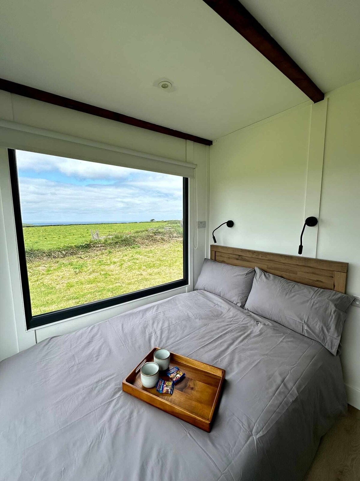 Your very own Bolt Hole, a little piece of Cornish paradise. Our unique cabin is surrounded by farmland with the stunning Seven Bays at your finger tips and close to both St Merryn and Padstow. The perfect escape for two. With a cosy kingsize bed that's raised so you can enjoy the far reaching views, your very own stylish bathroom and a hand crafted simple kitchen. The outside area is a real suntrap, perfect for those morning coffees and evening BBQ's. An ideal base to explore from.