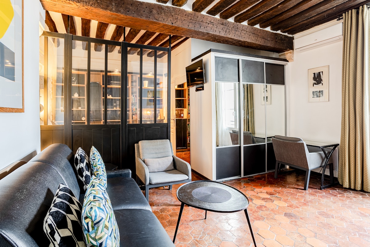 Apartmen 1 BR yang luas ini ditempatkan di bangunan Latin Quarter abad ke-17 di salah satu kejiranan yang paling diingini di Paris. Beberapa langkah dari Sungai Seine, quais romantik, kafe bersejarah, kedai, restoran dan monumen, ia dipisahkan secara senyap daripada kesibukan oleh dua halaman yang indah. Dekat dengan begitu banyak tapak yang menarik anda ke Paris. Siling rasuk kayu yang tinggi dan tingkap dari lantai ke siling memberikan tempat yang terang dan lapang untuk berehat.