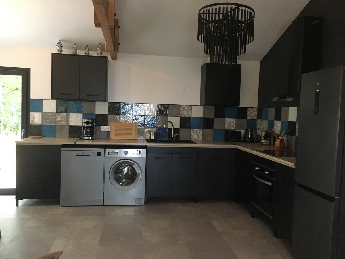 Anda akan menginap dalam suasana hijau yang dikelilingi oleh haiwan kami. Penginapan seluas 70 m² di atas tanah tertutup terdiri daripada ruang tamu, dapur yang lengkap, 2 bilik tidur serta bilik mandi dan tandas berasingan. Semua kemudahan penting untuk kelancaran penginapan anda sudah tentu tersedia untuk anda: mesin basuh pinggan mangkuk, mesin basuh, ketuhar, ketuhar gelombang mikro, tv, pembuat kopi, wifi... Haiwan peliharaan anda dialu-alukan selagi mereka tidak meninggalkannya bersendirian di penyenaraian.