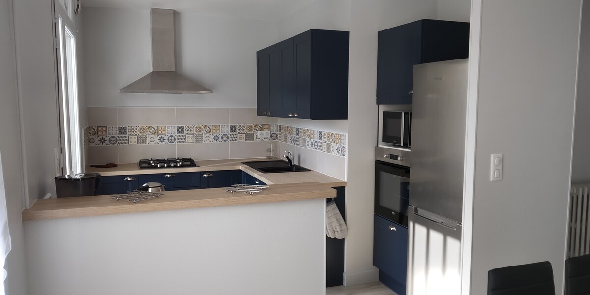 T3 luas 66 m2 di tingkat bawah penginapan kecil yang terdiri daripada 3 apartmen yang diubahsuai sepenuhnya, penginapan yang terletak di kawasan yang sunyi sambil berada berhampiran dengan pusat bandar dengan kedai, bar, restoran... Berhampiran dengan hospital, teater, La Poste... Tempat letak kenderaan percuma di jalan-jalan sekitar. Kemungkinan membawa basikal ke halaman.