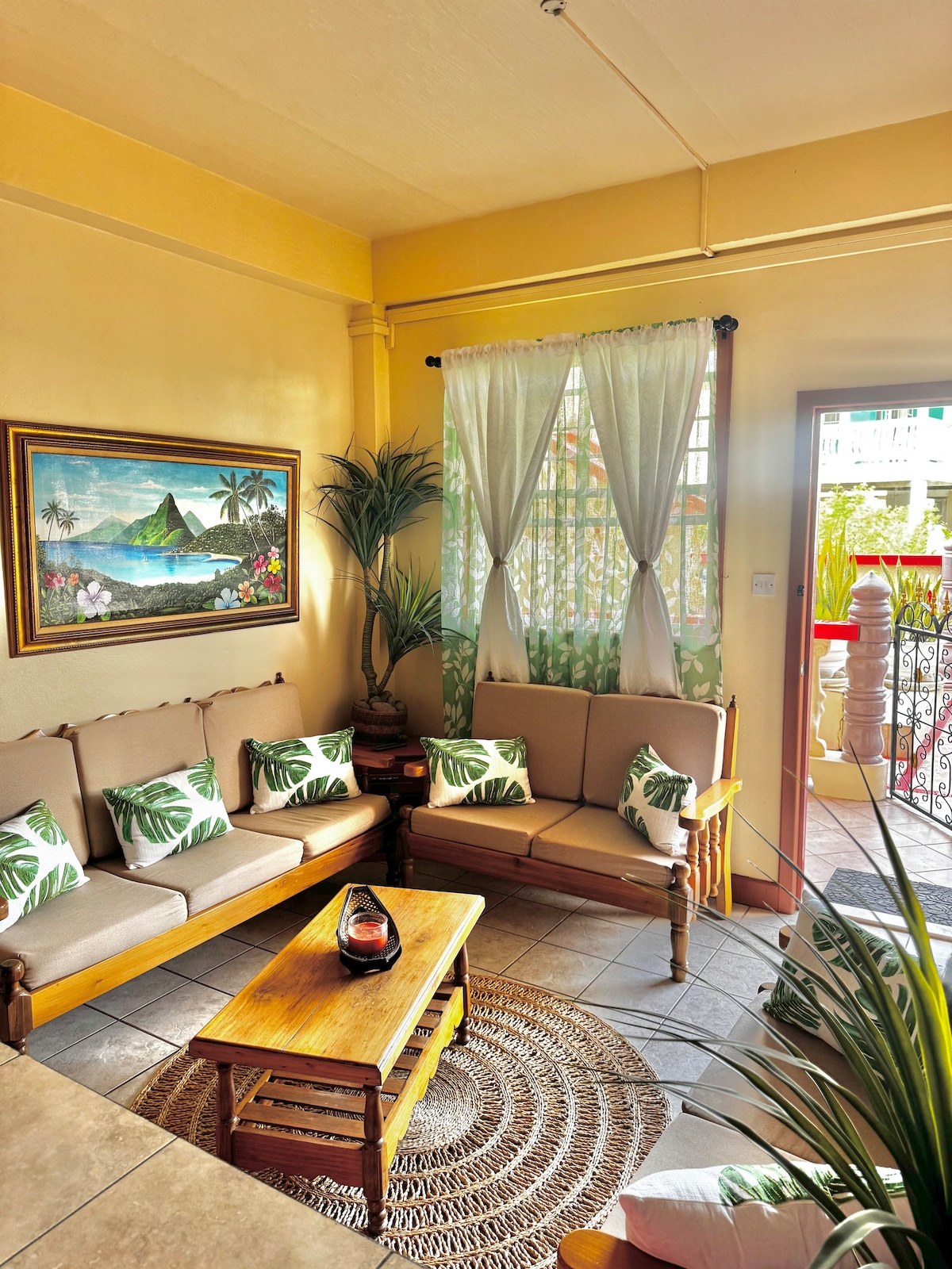 Stylish, spacious 1BR in Vieux Fort just 8 mins from the airport and 6–7 mins to the beach. This cozy tropical retreat features warm wood accents, natural textures, and a bright, airy feel. Relax in a peaceful, safe neighborhood with everything nearby. Perfect for couples or solo travelers seeking comfort, charm, and convenience.
