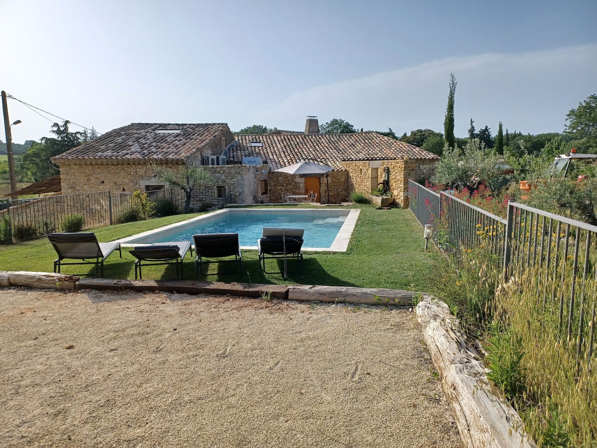 Selamat datang ke rumah kami, ke rumah ladang Provençal kami di tengah-tengah bukit, dipulihkan dengan menarik dan yang telah mengekalkan jiwa petani. Kami mengalu-alukan anda dengan kesederhanaan di rumah besar kami (150m²) yang menghadap ke selatan. Anda akan mendapati ketenangan di sana. Hanya anda yang akan mendapat akses kepada kolam renang yang akan mengecas semula bateri anda selepas beberapa hari melawat rantau kami yang indah. 20 minit dari Uzés, 40 minit dari Avignon dan Nîmes, anda akan menemui lembah Cèze, lembah Ardèche dan banyak permata lain!
