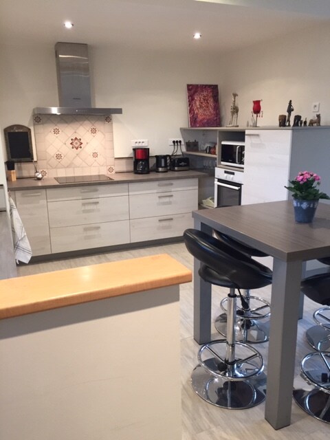 Gite kami membuat 55 M2, ia terdiri daripada: dapur yang serba lengkap dengan ruang makan, ruang tamu, bilik tidur berasingan, bilik mandi dengan sinki dan WC. Perabot moden, lukisan kontemporari di dinding. Sarapan percuma untuk malam pertama anda. Garaj yang anda inginkan untuk menurunkan basikal anda atau kereta kecil (Modus)