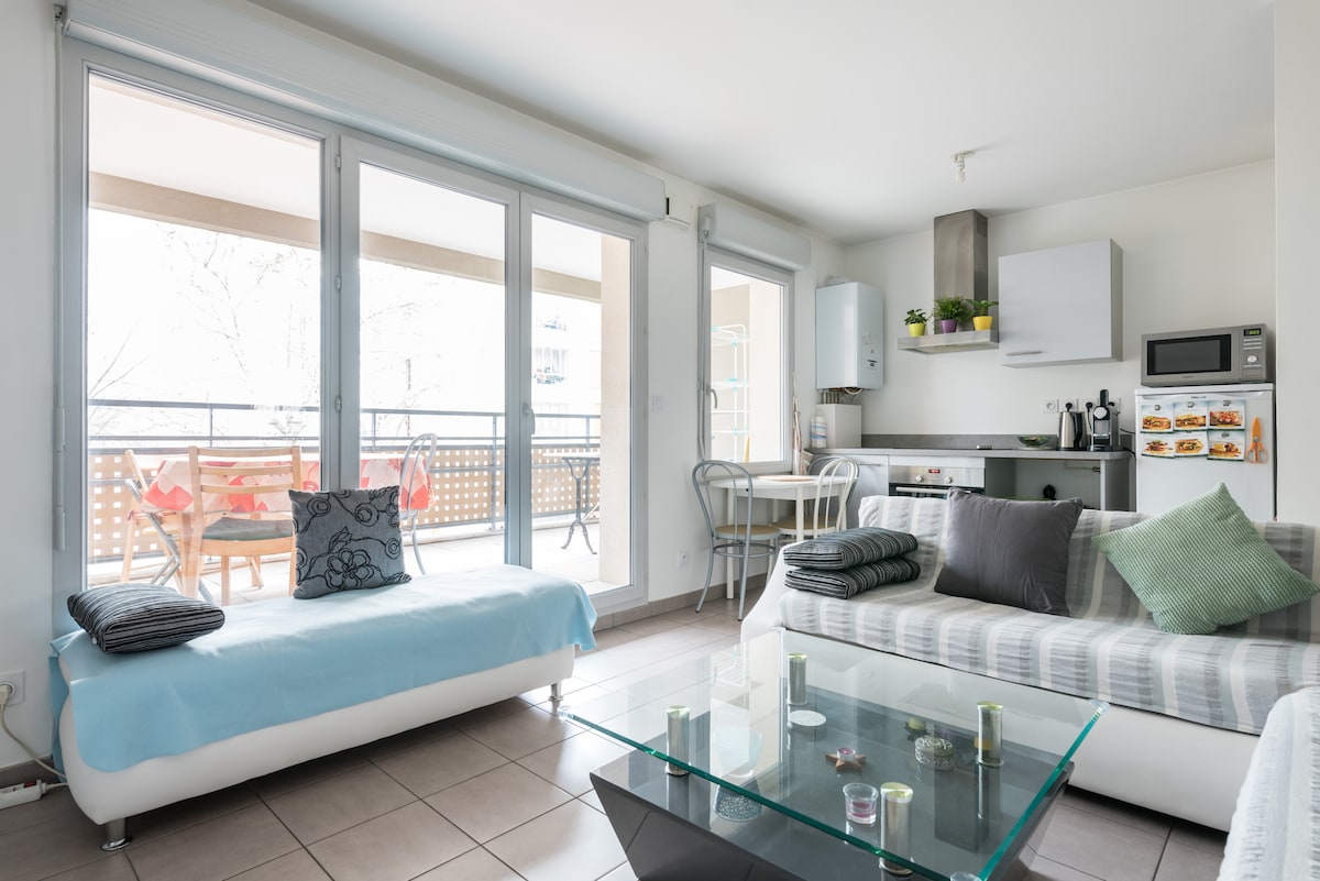 Menginap di apartmen 2 bilik tidur yang cerah ini, kondusif untuk berehat, diubah suai sepenuhnya dan selesa: Tempat letak✔ kereta bawah tanah persendirian atas permintaan Balkoni ✔ besar di tingkat 2, tenang dengan pemandangan Istana yang tidak terhalang Penyaman ✔ udara, WiFi gentian, Netflix, mesin basuh, mesin basuh pinggan mangkuk, ketuhar, semua kemudahan dan restoran 3 minit berjalan kaki ✔ Lokasi ideal: dekat dengan Eurexpo, stadium OL Groupama, LDLC Arena, hospital, universiti, akses langsung (trem/bas) ke pusat bandar/stesen Lyon ✔ Sesuai untuk pasangan, sehingga 4 orang
