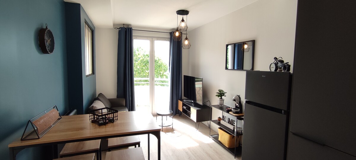 Bersantai di apartmen T2 moden yang tenang ini, diubahsuai sepenuhnya pada tahun 2023, di tingkat atas dengan balkoni yang tenang dan pemandangan Lyon dan Chateau de St-Priest yang tidak terhalang. Sesuai untuk 2 orang. ✔ Tempat letak kereta di kediaman + Tempat letak kereta bawah tanah persendirian tertakluk kepada ketersediaan Lokasi ✔ ideal: berhampiran dengan Eurexpo, taman stadium OL Groupama, LDLC, lapangan terbang, universiti, akses langsung (trem T2, bas C25) ke pusat/stesen kereta api Lyon ✔ Semua keselesaan: Penyaman udara, Wi-Fi gentian, Netflix, mesin basuh, semua kemudahan 2 minit jauhnya