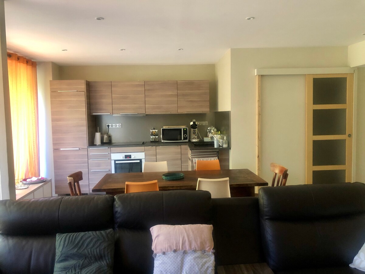 T3 diubah suai, luas, selesa dan lengkap untuk penginapan yang selesa! Ruang tamu berhawa dingin, hiasan kemas, suasana hangat. Tempat yang selesa untuk berehat selepas seharian bekerja. Lokasi strategis akses pintasan terus 4.6 km ke Eurexpo 11 km ke Stadium Groupama 11 km ke Arena LDLC Berdekatan dengan lapangan terbang Lyon-Saint-Exupéry Tramway T2, menghubungkan Saint-Priest ke pusat Lyon, sesuai untuk penginapan kerja atau perjalanan keluarga, Kediaman berpagar. Tempat letak kenderaan berkongsi yang besar di kaki bangunan