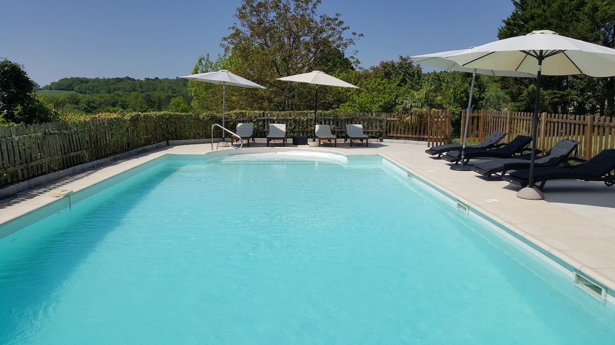 Gite Perancis mewah, betul-betul di luar bandar pasar Aubeterre yang indah. Baru diubah suai kepada standard yang sangat tinggi, dengan dapur/ruang keluarga terbuka yang besar, 1 Bilik tidur Double & 2 Bilik tidur Twin (semua dengan bilik mandi persendirian). 10 x 5m kolam renang BERPANAS (Mei dan September masa lain atas permintaan dengan bayaran) menghadap padang terbuka dan patio besar. Berjalan ke kampung tempatan untuk menggunakan kedai tempatan untuk roti pagi dan croissant segar anda dan lain-lain, atau nikmati sungai, chateau dan kebun anggur yang lebih jauh.