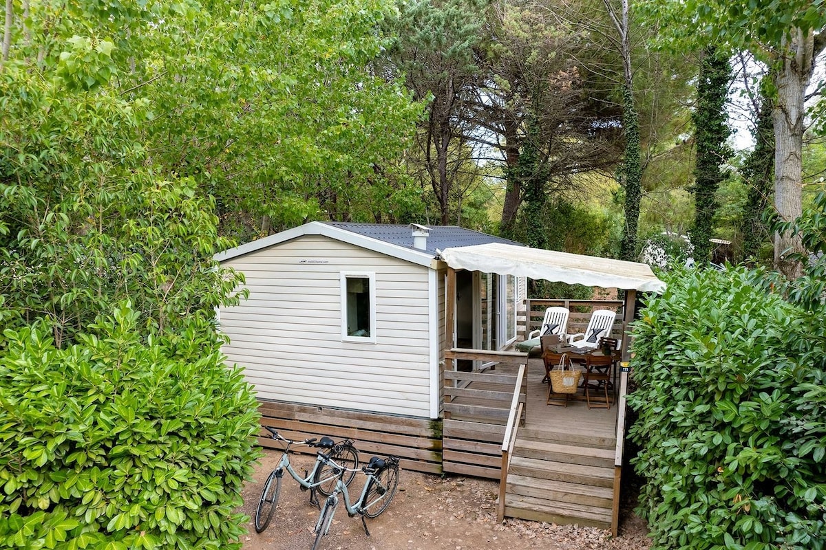 Rumah mudah alih berkelipatan 22 m² yang serba lengkap di Saint-Aygulf. Cadar dan tuala disediakan, plancha, gril, teres besar berudara 22 m² berhampiran laut dengan kolam renang yang tenang di tapak perkhemahan yang selamat, kamera, pengawal keselamatan, penghadang dengan kawalan akses: – 1 bilik tidur double 140x190 + 1 bilik tidur 2 katil 70x 190 single - Dapur lengkap - 2 TV pendingin hawa - Bilik mandi + tandas berasingan – ⛱️ Pantai berhampiran laluan basikal atau hentian bas di hadapan tapak perkhemahan 🏊 Kolam renang akses terbuka Termasuk ruang 🅿️ letak kenderaan persendirian