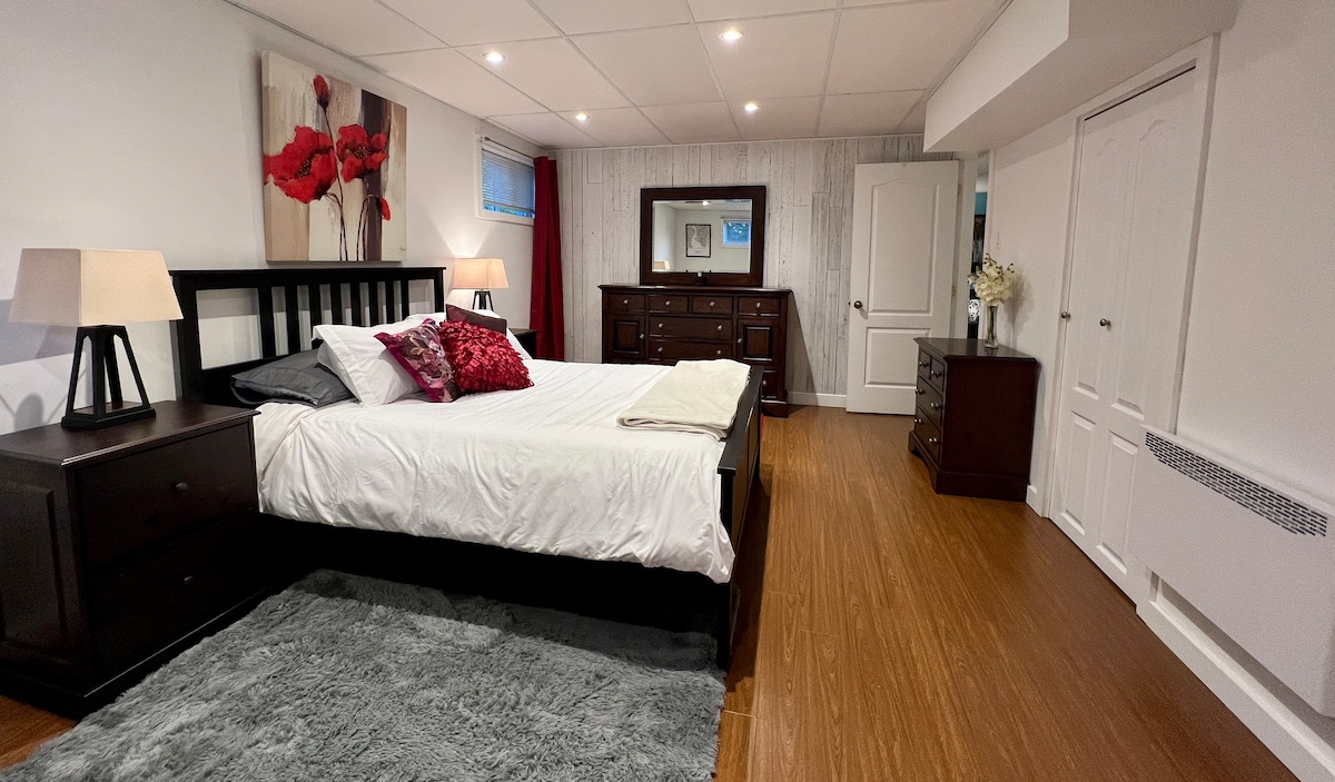 Montreal’s Modern Studio, a Home Away from Home! CITQ # 315749 Come stay at this comfortable space - a culmination of peaceful and charming vibes, where Montreal city is only minutes away by drive! A cozy ‘home away from home’ is what we like to call this place, with renovations undertaken into the unit itself, specifically flooring and secured private entrance way for our guests. **We offer services like decorating the studio for you for a birthday or romantic evening, at an additional cost!