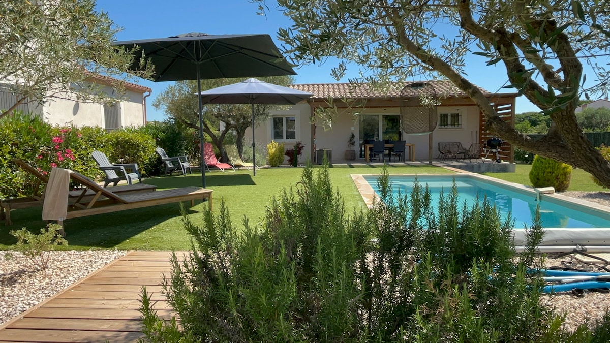 Gite di tingkat 1 vila baru Tenang dan berhampiran dengan pusat bandar, berjarak 10 minit berjalan kaki. Akses persendirian dan teres Kerja jauh melalui ETHERNET percuma, atau WIFI Dekat dengan sungai Cèze (dengan pantai untuk berenang dan berkanu ). Berhampiran dengan Pont du Gard, Grotte CHAUVET, UZES dan ALES, laut pada 1.5 jam Kolam dikongsi hanya dengan pemilik, tiada sewaan lain di penginapan Kami pastikan kami mandi apabila anda tiada di rumah.