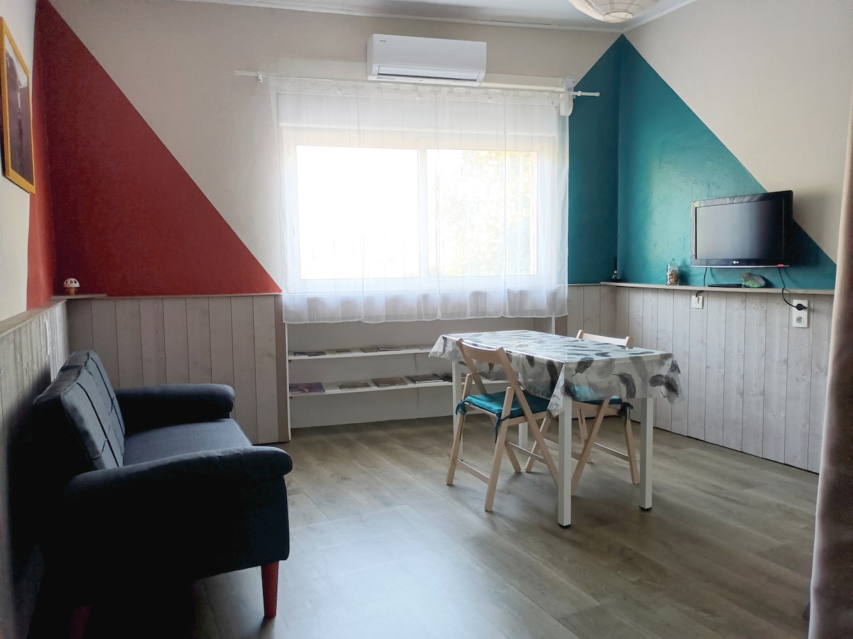 Terokai studio menawan kami seluas 30 meter persegi untuk 2 orang, yang terletak di tingkat bawah rumah ladang kami. Ia menawarkan ruang yang mesra dengan ruang tidur dan katil saiz king, ruang tempat duduk yang selesa, serta dapur yang serba lengkap. Tetamu boleh memanfaatkan halaman dalam dan mengakses semua kawasan umum rumah, termasuk kolam renang. Linen dan tuala disediakan. Atas permintaan, kami juga boleh menyediakan katil bayi dan/atau kerusi tinggi untuk anda.