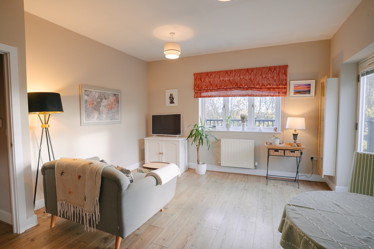 Baru-baru ini kami telah mengubah garaj berganda seluas 70 meter persegi kami menjadi apartmen studio pelan terbuka dan bergaya dengan kayu oak yang suram dan berlantai kayu keras. Ia adalah ruang yang hebat, cerah, dan santai dengan pintu bifold 3 meter dengan bidai bersepadu yang terbuka sepenuhnya ke halaman berkongsi dengan rumah kami. Terdapat lampu langit Velux elektrik yang besar dengan bidai gelap. Ia adalah ruang ringan yang hebat untuk berehat atau bekerja. Ia mempunyai akses persendirian sendiri dari jalan.