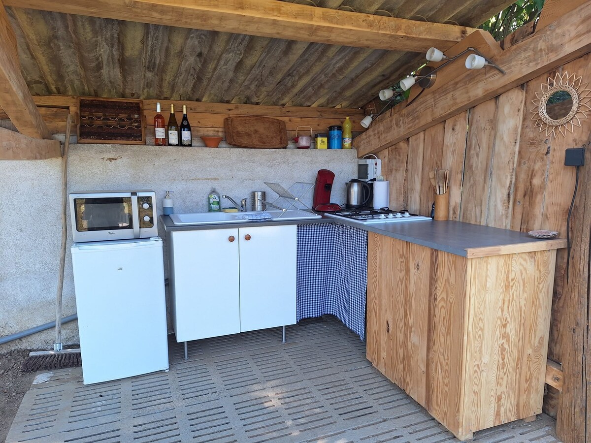 Saya mereka bentuk dan membina kabin teratas untuk menawarkan anda ibu bapa impian dan puisi semula jadi. Dibina dengan bahan-bahan tempatan dan ekologi, ia menawarkan keselesaan yang diperlukan untuk penginapan yang menyeronokkan. Di luar, merenungkan pemandangan dan alam semula jadi yang mengelilingi tempat ini, di dalam biarkan diri anda dikejutkan dengan suasana yang lembut dan romantik. Sarapan percuma dihidangkan terus di kabin dan anda boleh menempah sepiring hasil tanaman tempatan untuk makan malam.