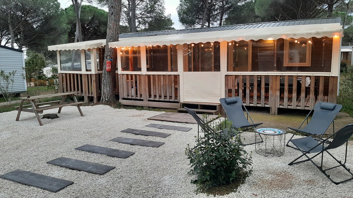Bercuti ke Perkhemahan Premium Parc Montana! Bersantai di bawah cahaya matahari Mediterranean dan nikmati 3 kolam renang, 1 daripadanya dipanaskan. Gelongsor air, jakuzi, taman pelbagai sukan dan hiburan keluarga. Berdekatan dengan pantai dan tempat yang mesti dikunjungi, Semuanya termasuk: Pembersihan, wifi, filem VOD Basikal Clim! Teres besar yang ditutup dengan sangat mudah untuk anjing atau kanak-kanak anda. Penginapan yang tidak dapat dilupakan terjamin! Sewaan / linen tuala diuruskan oleh meja sambut tetamu tapak perkhemahan