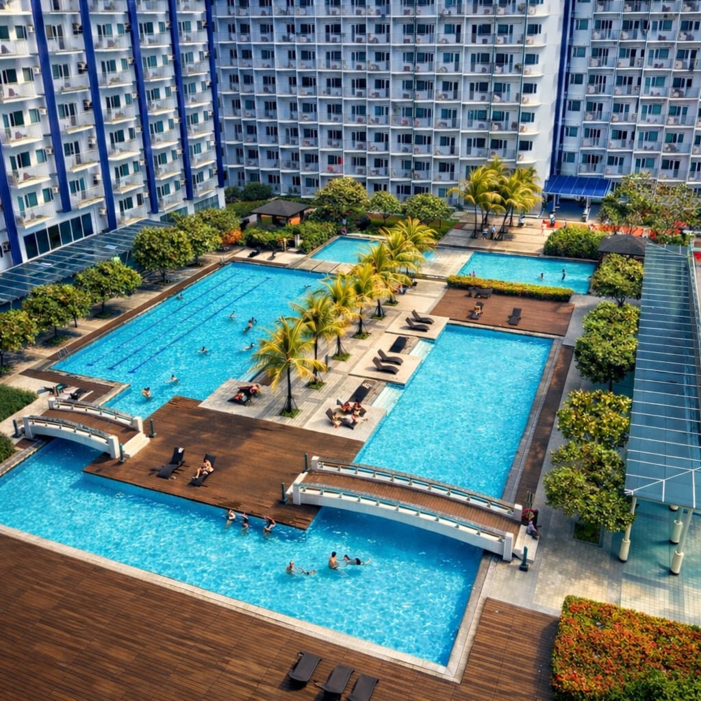 1BR • Jazz Makati • Balkoni • Pemandangan Kolam Renang