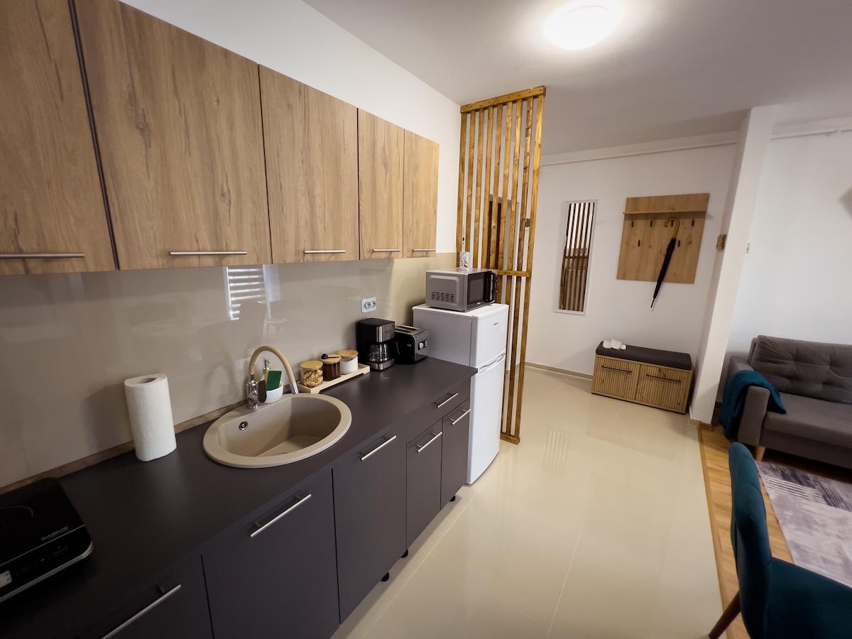Apartmen 2 bilik, moden dan mesra, sesuai untuk pasangan atau pengembara solo. Bilik tidur dengan katil saiz queen, ruang tamu terbuka dengan TV, dapur praktikal dan bilik mandi bersih. WiFi pantas, A/C dan daftar masuk fleksibel. Mesra 🐾 haiwan peliharaan – haiwan peliharaan dialu-alukan. Tambang Garam Turda dalam jarak 10 minit berjalan kaki. Kedai dan stesen bas berhampiran dengan penginapan.