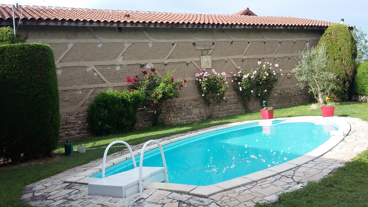 Kami mengalu-alukan anda ke kotej 75 m2 yang menawan ini, terletak 15 minit dari Feurs dan Montrond les Bains, dengan teres 15 m2 menghadap barat daya peribadi. Penginapan ini telah diubah suai, ia terdiri daripada ruang tamu (TV, konsol permainan, WiFi) dengan dapur lengkap (dapur elektrik, ketuhar gelombang mikro, pembuat kopi, pembakar roti, ketuhar, plancha), 2 bilik tidur dengan ruang simpanan, bilik mandi dan tandas. Tempat Letak Kereta Persendirian Percuma Pakej linen: €20 Pakej tuala mandi: €10