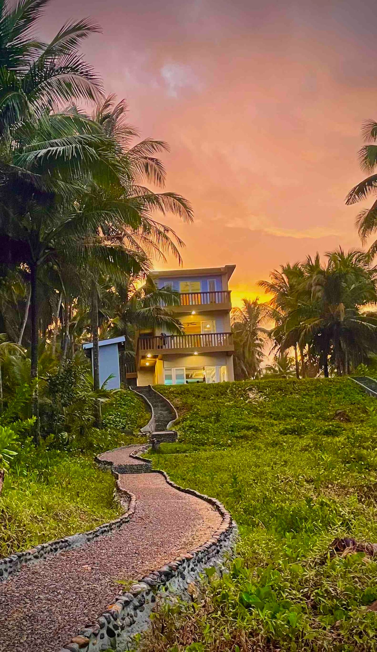 Bertenang di percutian yang unik dan tenang ini, beberapa langkah dari meluncur, dan pantai berenang. Pemandangan matahari terbit dan terbenam menakjubkan dari suite tingkat tiga ini. Berjalan menyusuri laluan batu persendirian dan melangkah ke dalam air, meneroka kolam air pasang, atau mendayung ke arah meluncur. Berjalan-jalan sejauh dua batu menyusuri pantai terpencil, dan mungkin tidak melihat jiwa lain. Keluar dari pantai ke pancuran mandi luar kami atau mandi gaya Filipina dengan air sejuk bersih segar dari telaga pam tangan tepi pantai kami.