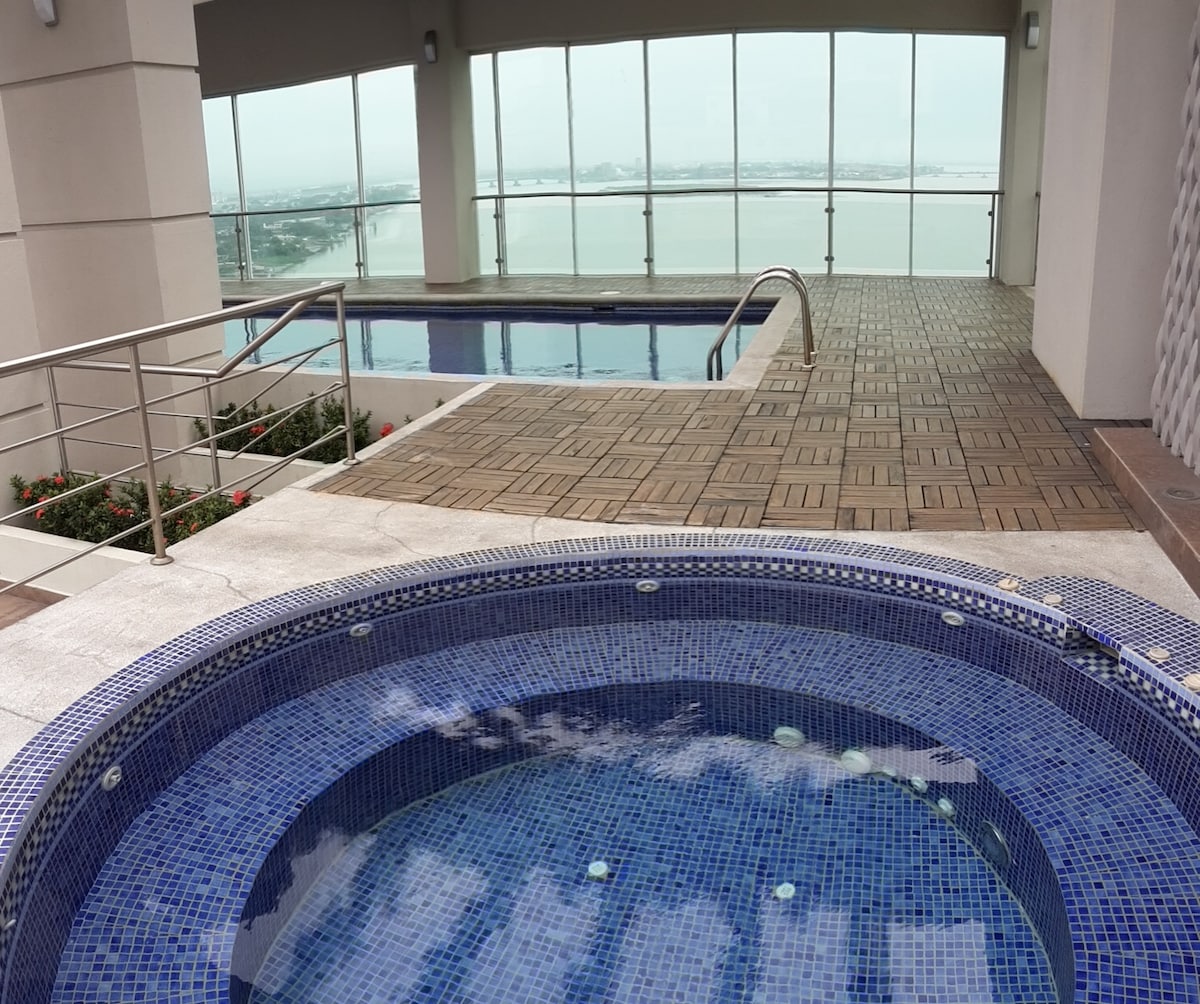 APARTMEN YANG SANGAT BAIK GYE Nikmati malam romantik di balkoni yang indah, jatuh cinta dengan pemandangan atau hanya nikmati suasana dalaman yang dihiasi dengan baik untuk diri anda sendiri. Semua ini anda boleh lakukan di suite eksklusif kami, di mana kami menjaga kebersihan. Komen umum daripada tetamu kami ialah mereka tidak sabar untuk menginap dengan kami lagi. Semua yang anda akan temui di suite ini telah disediakan untuk anda mendapat pengalaman yang istimewa!