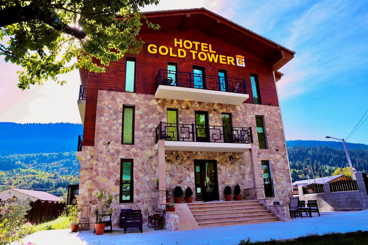 Hotel Gold Tower terletak di bahagian yang tenang di pusat bandar gunung yang indah - Mestia. Tetamu boleh menikmati pemandangan matahari terbenam yang indah, Menara Svanetian yang menawan, puncak utama Greater Caucasus Mountain Range - Tetnuldi, terutamanya dari teres atas bumbung hotel yang bergaya dan berkilat. Resort ski Hatsvali terdekat adalah dalam jarak 1.5km dari hotel (Ketinggian tertinggi di atas paras laut-3248 meter). Untuk ski dan papan luncur salji, 5.5 km lereng tersedia.