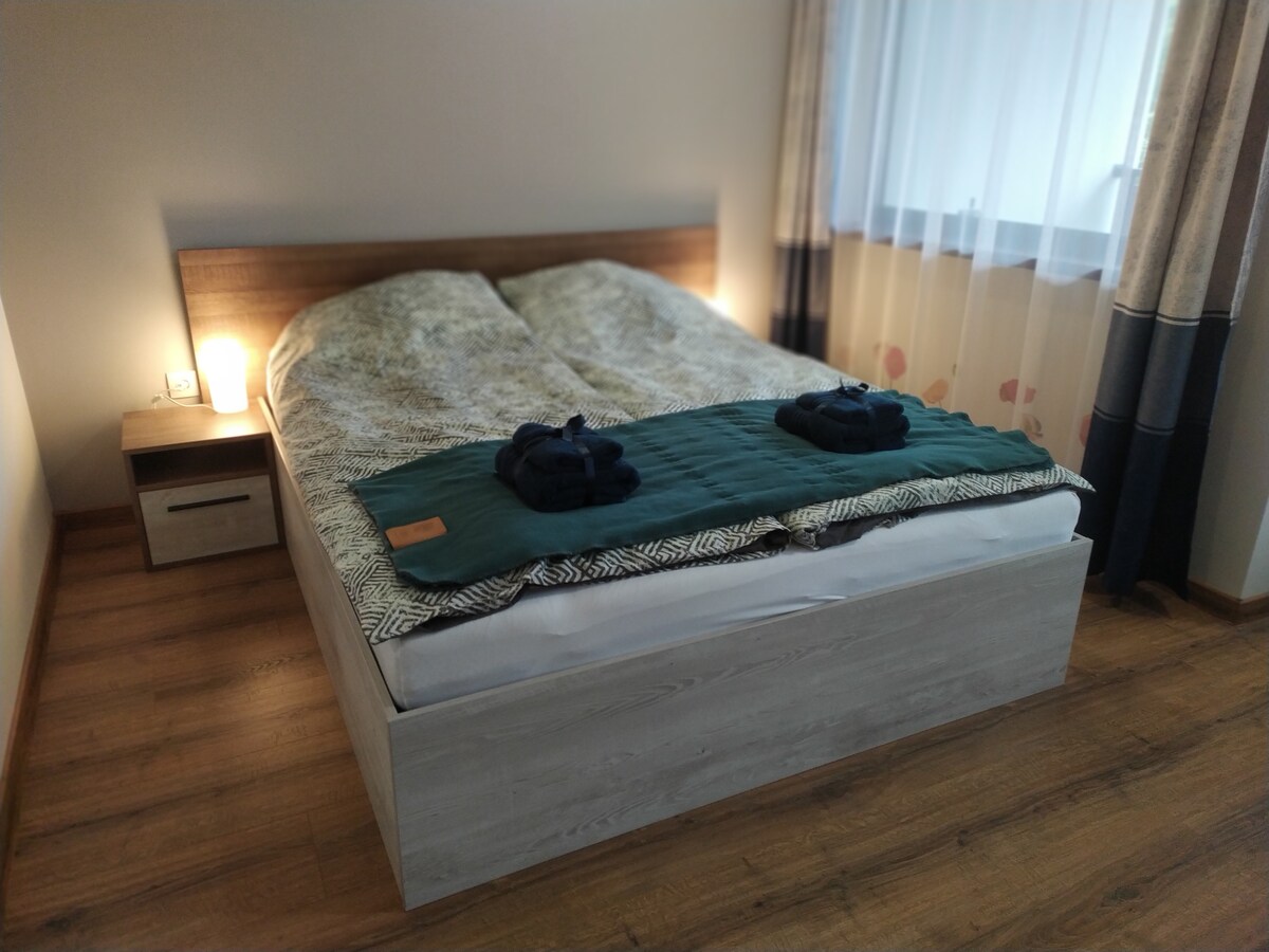 Studio ini mempunyai katil double (bilik tidur 1.60 x 2.00m), katil sofa (regangan -1.40 x 1.90m), dapur kecil, bilik mandi, teres yang menghadap hutan pain dan gunung. Dapur mempunyai semua peralatan dan pinggan mangkuk yang diperlukan untuk makan. Kompleks ini mempunyai tempat letak kereta percuma sendiri. Sekiranya tiada tempat letak kenderaan di kawasan sekitar, terdapat tempat letak kenderaan berbayar. Lif, cerun, tempat dan restoran terletak dalam jarak berjalan kaki.