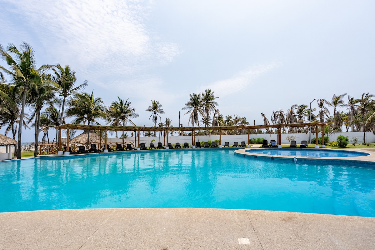Rumah yang indah dikelilingi oleh alam semula jadi yang tiada tandingan, tanpa bunyi bising bandar, nikmati kawasan eksklusif berhampiran kawasan membeli-belah dan pantai yang indah, nikmati bilik kami dengan hiasan semula jadi serta perabot dengan hutan tropika seperti parota, rumah kami adalah ruang yang unik di mana anda boleh datang untuk berehat dan menghabiskan beberapa hari yang luar biasa di laut, kami mempunyai kelab pantai eksklusif dengan kolam renang, gimnasium, sauna, bar dan restoran yang bersih, semua ini SECARA PERCUMA dalam tempahan anda.