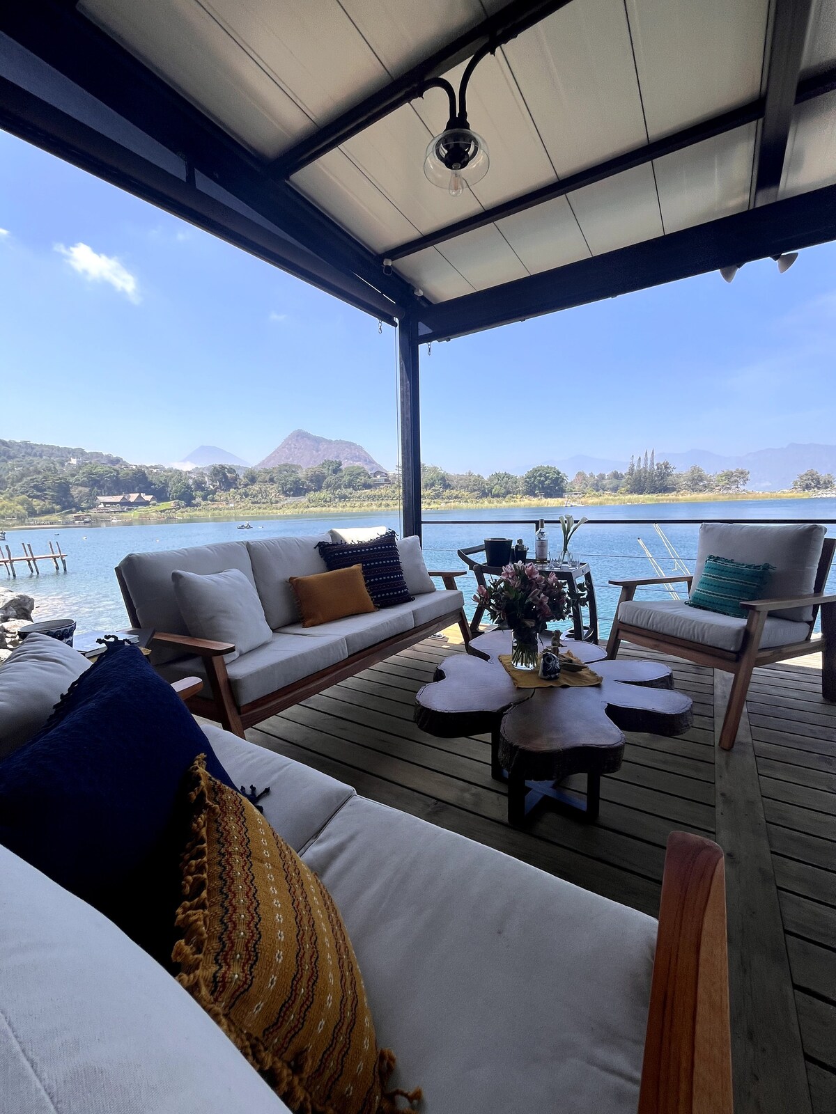 Vila tepi tasik persendirian dengan akses air langsung. Nikmati berkayak, papan kayuh, tab mandi air panas, temazcal, taman, teres, lubang api dan dapur penuh. Dua bilik tidur, pemandangan menakjubkan, dan privasi sepenuhnya. Sesuai untuk berehat dengan pasangan, keluarga atau rakan-rakan anda. Tersedia bot persendirian dan jetski untuk meneroka tasik. Bangun pagi dengan pemandangan gunung berapi dan berenang terus dari pintu anda. Semua yang anda perlukan untuk bersantai dan menikmati keindahan Tasik Atitlán.
