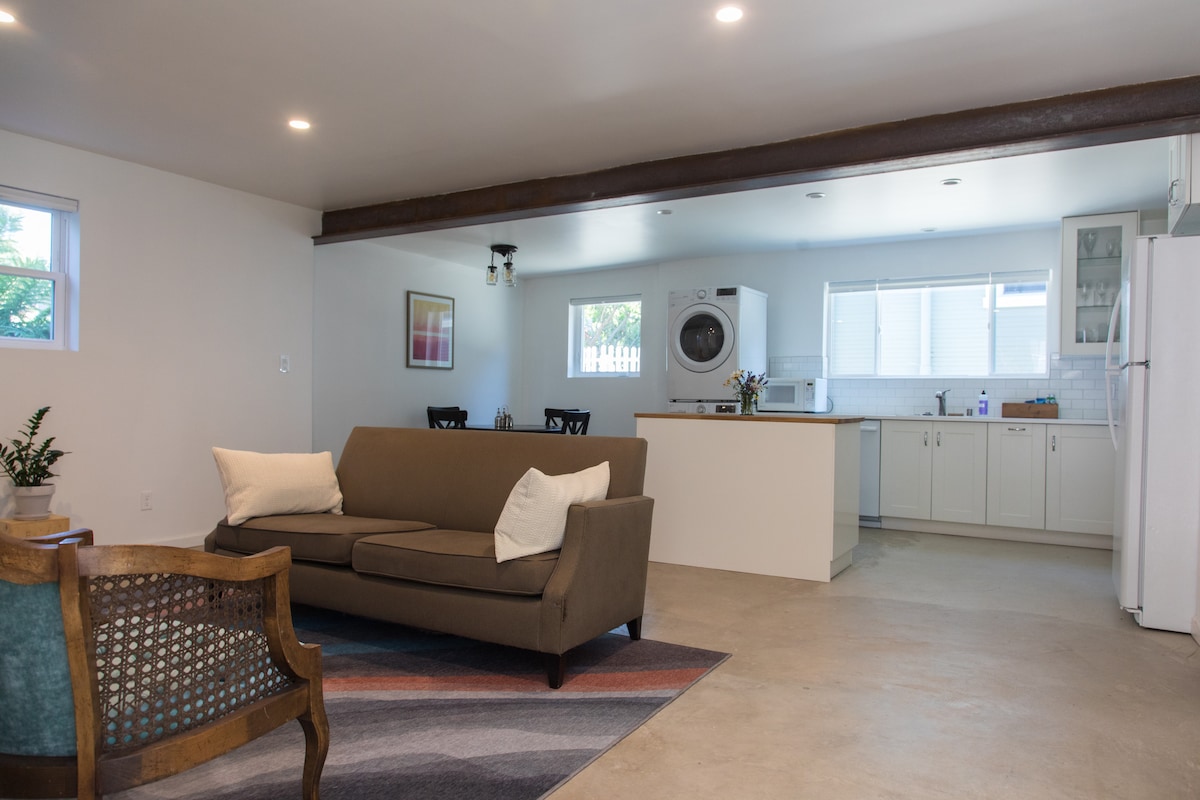 Sangat bagus, diubahsuai 700 Sq. ft. Kondominium moden pertengahan abad di pusat Palo Alto. Satu bilik tidur besar, satu bilik mandi, dapur yang lengkap dengan semua peralatan baru, kawasan patio belakang peribadi yang indah...semua ini dan hanya 3 blok berjalan kaki ke University Ave (restoran & membeli-belah yang hebat), 3 minit berjalan kaki ke CalTrain, 10 minit berjalan kaki ke Kampus Stanford (atau mengambil Stanford Shuttle hanya 2 blok jauhnya)! Tidak perlu memandu walaupun ruang untuk 2 buah kereta, satu menyamar.