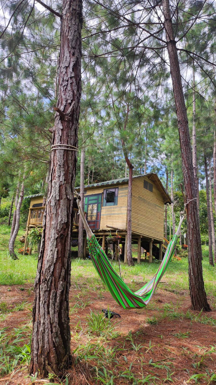 Hospedaje privado segundo piso de Casa bosque en San Carlos Antioquia a 2.5 horas de Medellín, con acceso para cualquier tipo de vehículo. Estilo vintage, totalmente equipada, con 6 camas, 2 baños y capacidad hasta para 9 personas adultas en cama + 2 colchon. Vista 360° al bosque, piscina, asador, barril grande, granja, lago de peces y kiosco. Clima cálido de día y fresco de noche. Ideal para familias, amigos, celebraciones y eventos. A 10 minutos del pueblo.