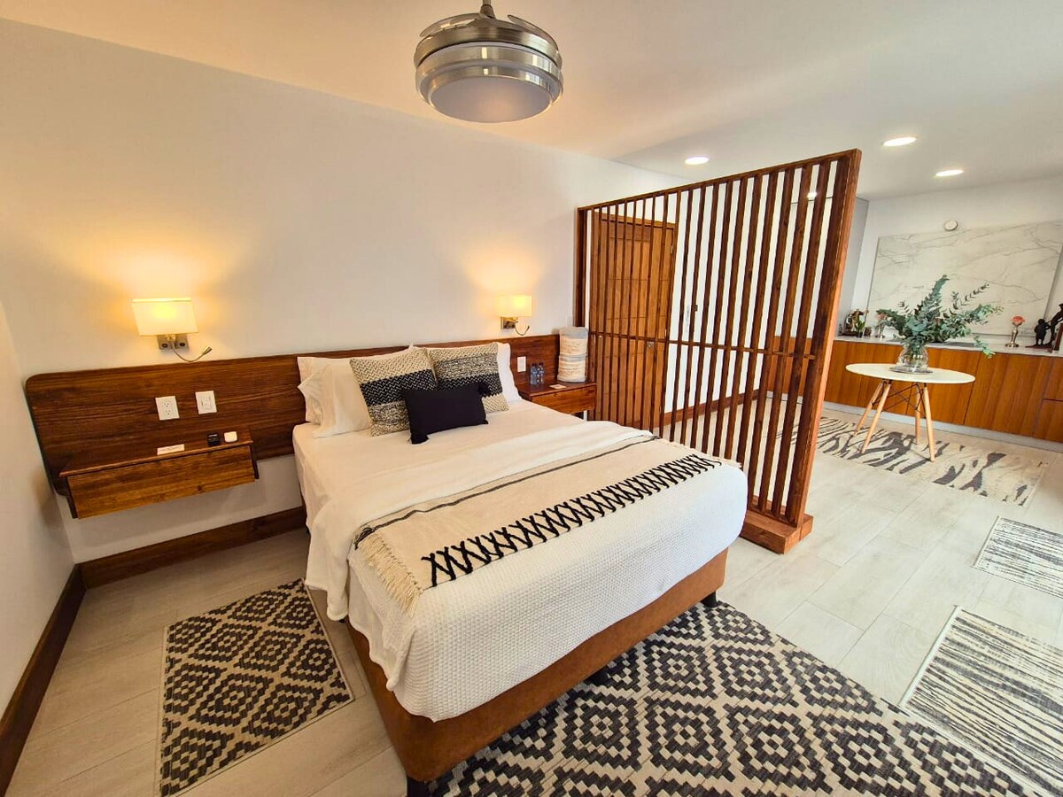 Kami pasti mereka akan menikmati loteng ini, ia berada di lokasi yang baik, sektor yang tenang tanpa trafik dan insurans direka dengan warna yang tidak begitu biasa tetapi elegan dan selesa, ia dilengkapi dengan semua yang anda perlukan, dapur dengan semua peralatannya, 2 televisyen, katil yang selesa, penyaman udara, bilik mandi penuh, akses mudah mempunyai kedai roti di sudut, kedai kejiranan, kafe yang sangat berdekatan, mereka pasti akan berasa seperti di rumah yang direka dengan banyak dedikasi untuk menjadikan penginapan mereka yang terbaik