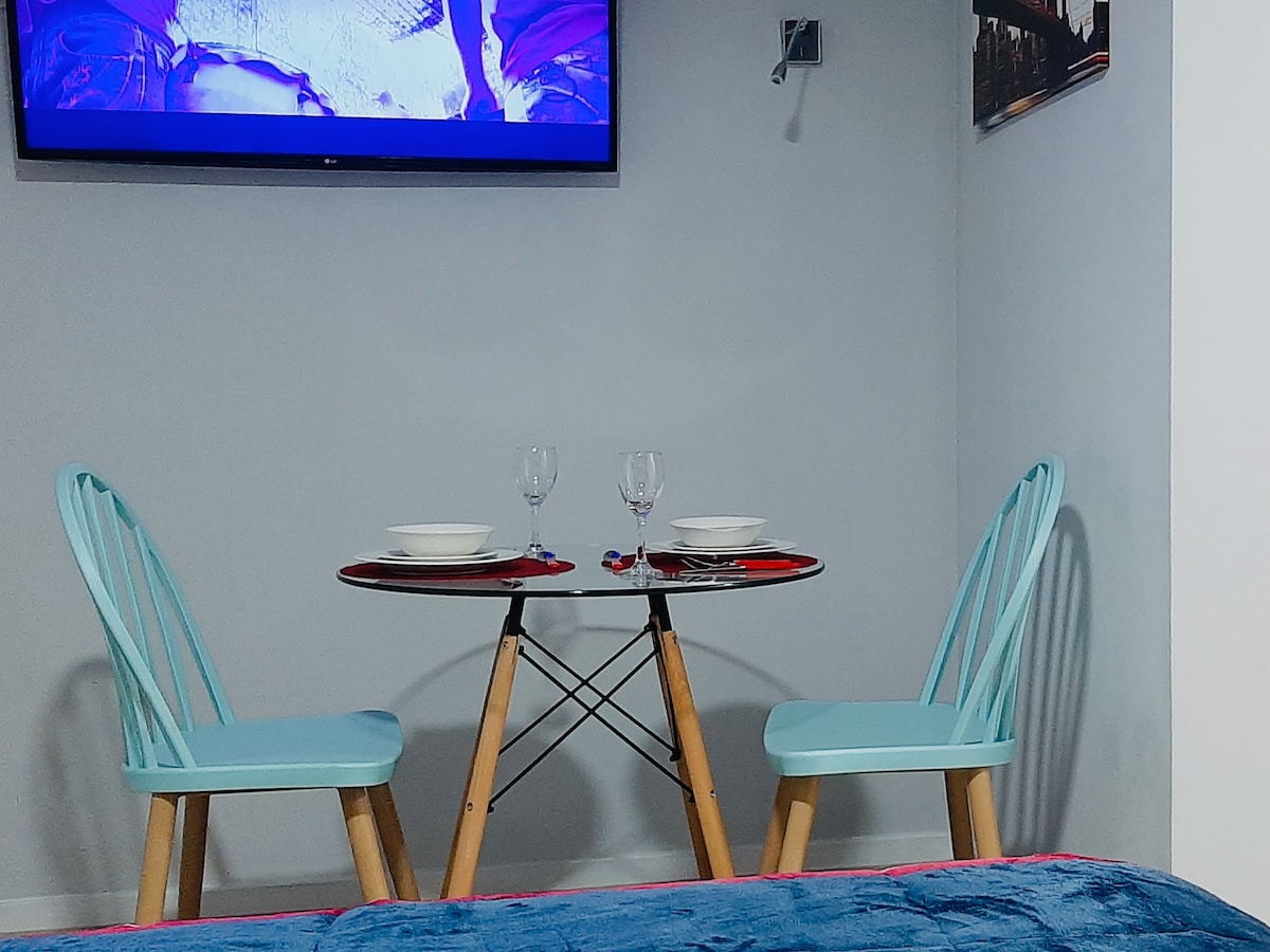 Selamat datang ke apartmen studio moden dan sempurna kami, direka untuk menjadikan penginapan anda praktikal, tenang dan bebas daripada masalah. Ia terletak hanya 3 blok dari Metro Parque Almagro, di pusat bandar Santiago. Ruang ini disediakan dengan teliti untuk membuatkan anda berasa seperti di rumah sendiri: bersih, lengkap dan dengan susun atur berfungsi yang anda pasti sukai. Di samping itu, ia terletak sangat dekat dengan Movistar Arena, Parque O'Higgins, Fantasilandia, Teatro Caupolicán dan Teatro Cariola.