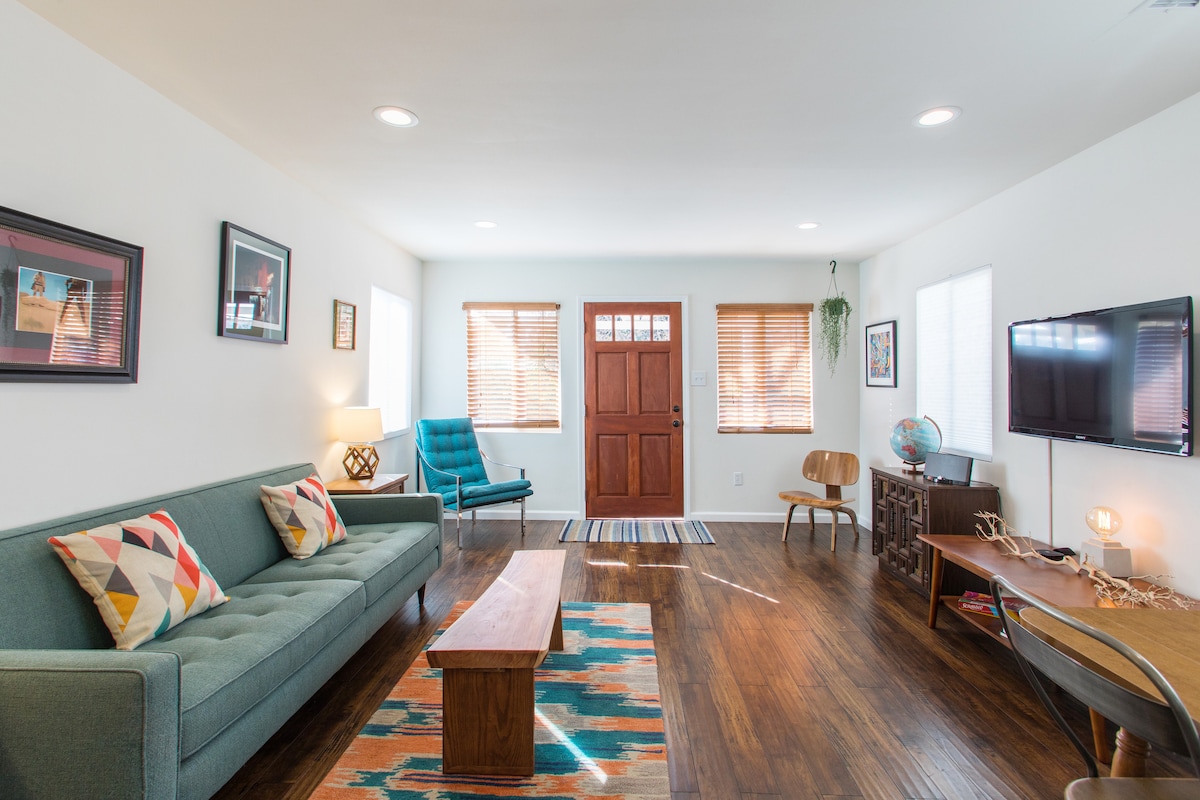 Minum kopi pagi di beranda hadapan Craftsman yang tenang ini, dinaungi oleh bougainvillea melengkung yang menakjubkan. Padat tetapi damai pada 600 kaki persegi, rumah ini mempunyai dek belakang jati, hiasan kontemporari yang cerah, dan suasana dalaman dan luaran yang lapang. Kami ingin menjadi hos penginapan anda di salah satu kejiranan paling kreatif di LA. Kami ada harga berasingan untuk sesi penggambaran atau penggambaran, sila hubungi kami sebelum membuat tempahan. Malangnya walaupun kami suka haiwan peliharaan, kami tidak dapat menerima haiwan peliharaan. Terima kasih kerana memahami.