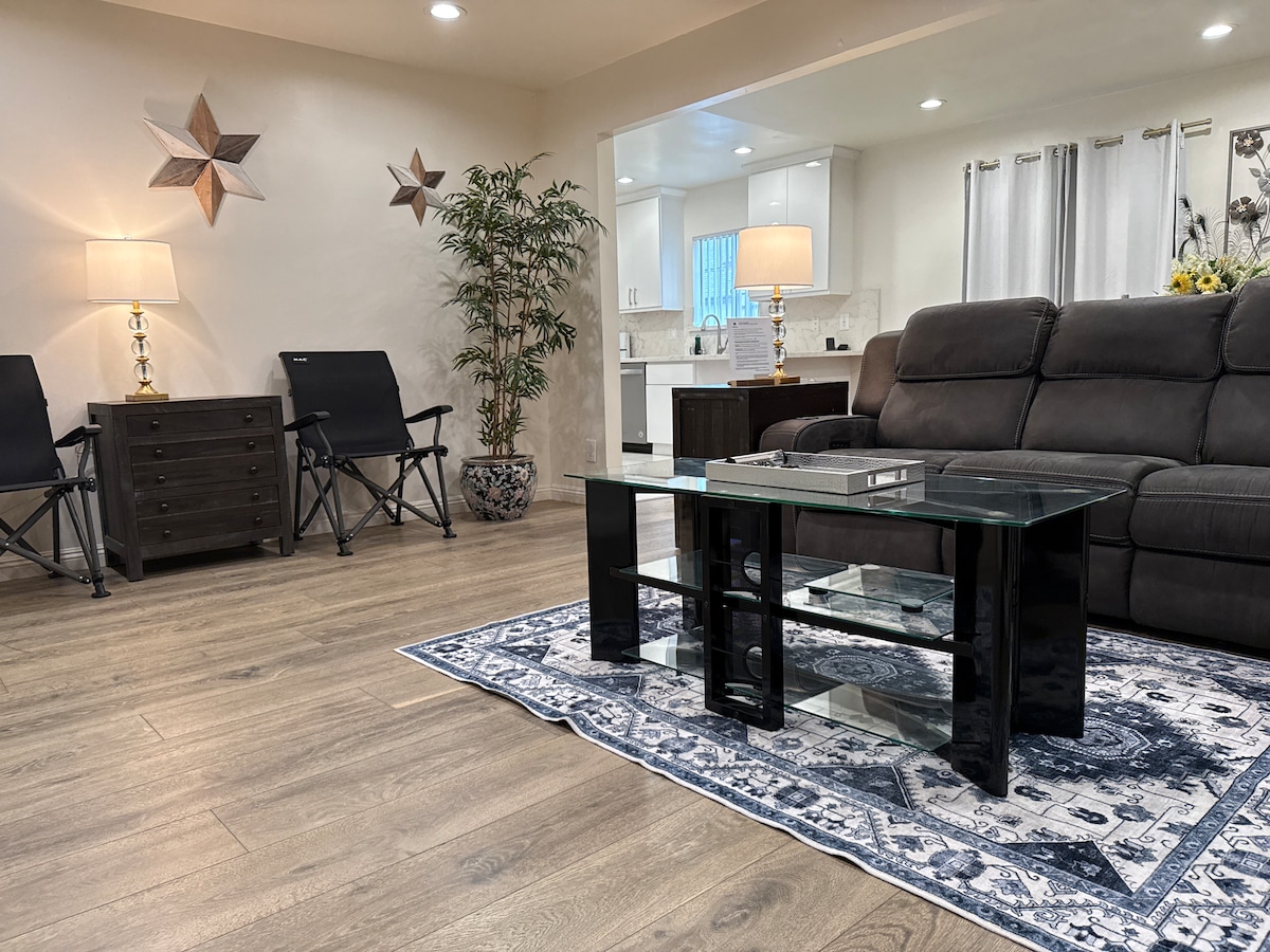 Mesra kanak-kanak & bayi dan Tempat letak kenderaan percuma! Diskaun 5% mingguan Akses percuma ke Disney+ (Larangan Anti-parti) Tiada parti, perjumpaan atau sebarang jenis acara yang tidak dibenarkan. Dilarang merokok dalam apa jua bentuk-ini termasuk ganja. Terletak di tengah-tengah hanya 15 minit ke pusat bandar LA dan 30-45 minit ke Disneyland di Orange County. Rumah ini adalah bahagian rumah utama yang baru diubahsuai daripada dupleks detach (2 unit dalam satu lot) ruang tamu seluas 1,600 kaki persegi, luas untuk sehingga 10 tetamu. Rumah yang sangat bersih dan selesa.