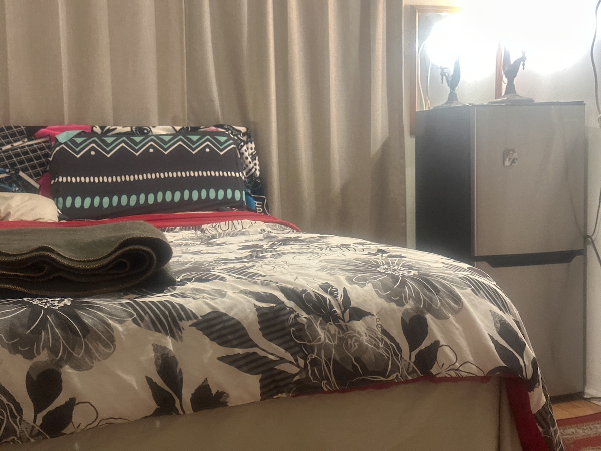 Quiet and cozy standalone guesthouse with private entrance and self check-in. No contact with other guests, no spaces are shared — everything is entirely for your private use. Features a queen-size bed ideal for couples, an additional sofa bed can be provided for the third guest to sleep on. A/C and heating, work desk, fan, and smoke detector. Enjoy a private kitchen for light cooking, a walk-in shower, and blackout curtains for restful sleep. Large windows provide plenty of natural light.